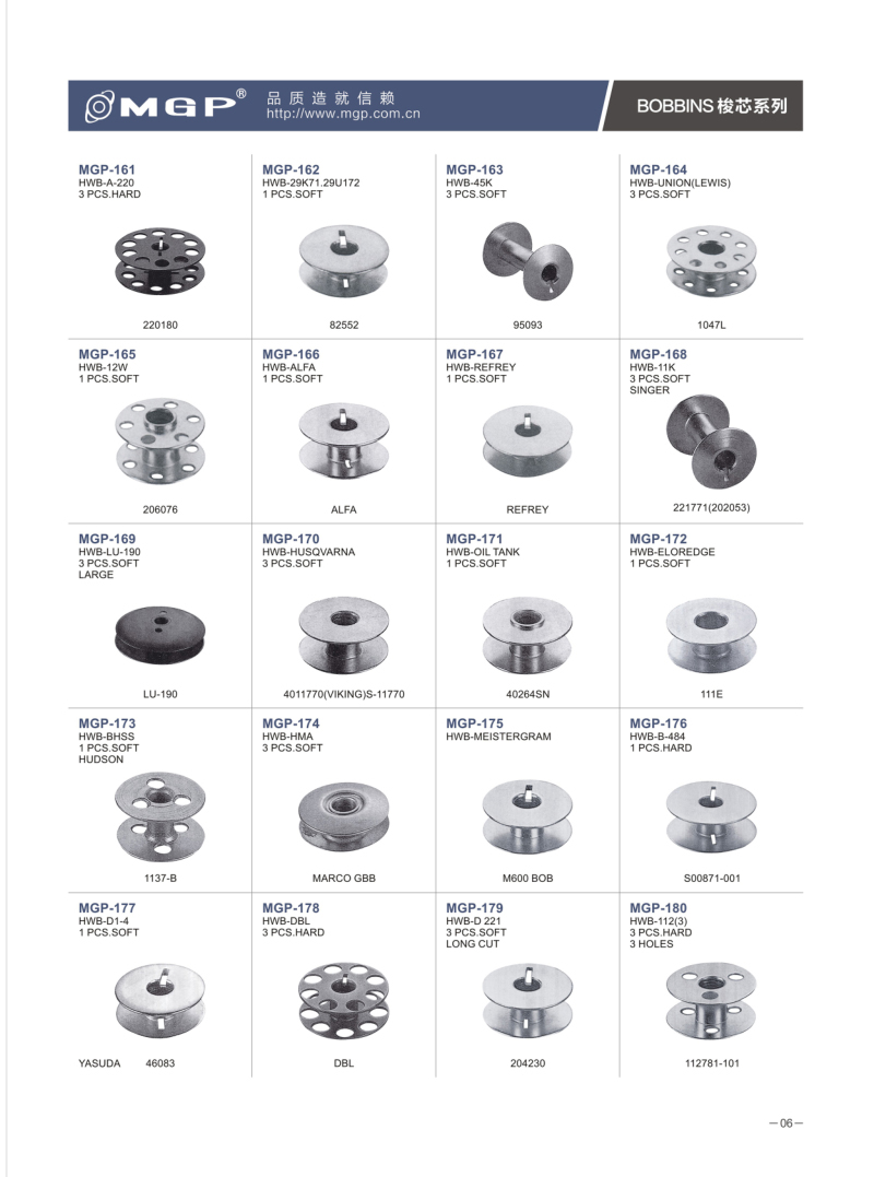 寧波市宏威機(jī)械制造有限公司2023-08-08寧波市宏威機(jī)械制造有限公司 MGP品牌成立于1990年,總部位于浙江寧波。企業(yè)分為浙江寧波、浙江紹興、河北、三大生產(chǎn)基地。全產(chǎn)業(yè)鏈自主生產(chǎn)的全產(chǎn)業(yè)鏈。是國(guó)內(nèi)較大的梭芯生產(chǎn)基地和縫紉機(jī)配件的企業(yè)之一。是我國(guó)縫配件梭芯、梭殼縫配件出口量較大企業(yè)。MGP品牌產(chǎn)品與各大整機(jī)公司配套,并銷售80多個(gè)地區(qū),深受客戶信賴。